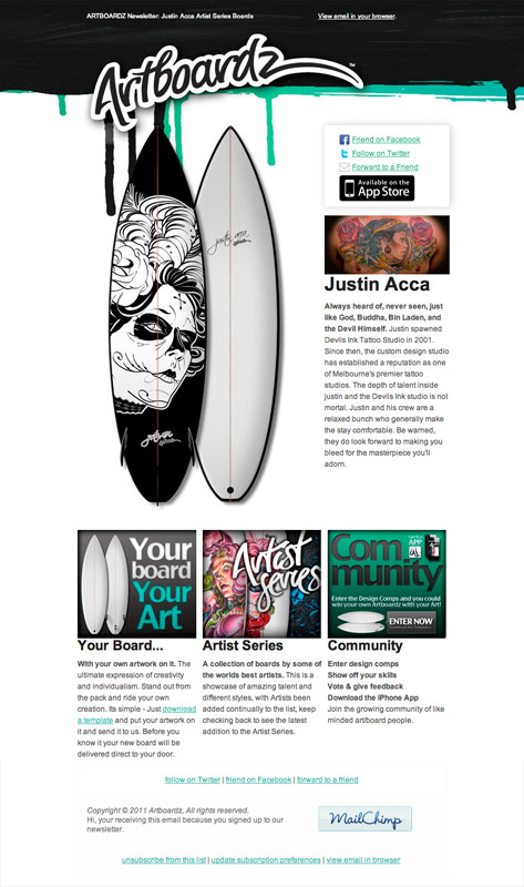 Founded by myself and friend Kaine Whiteway, Artboardz™ was born from a desire to put our artwork onto our surfboards. Having a digital art background, it became apparent very quickly that there was no simple, cost effective method in the market to do this. So we set about building a online based, high quality finish, deliver to your door globally surfboard art business.