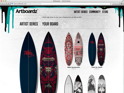 Artboardz™ represents an artistic mindset in an action sports marketplace. The branding has roots in graffiti yet is stylised with key devices, like the paint drips to convey a hand produced feel in a digital space.